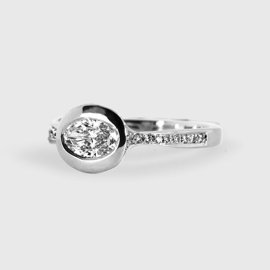 Anillo cintillo diamante oval acompañado